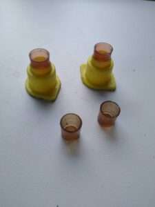 Overlarven:- Larven geplaatst in kunstmatige koninginnedoppen van kunststof (nicot).